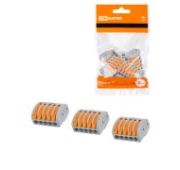 Соединительная клемма 2-х контактная прозрачного цвета с нажимным рычагом до 2 одножильных проводников сечением от 0,1 мм² до 2,5 мм² и многожильных медных проводников сечением от 0,1 мм² до 4 мм², U-мах. 380 В, I-ном. 32 А. t-раб. -25…+75°С, упак. 5 шт.