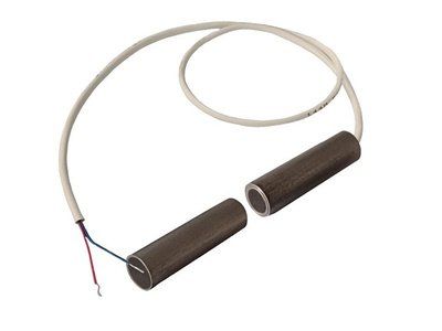 Магнитоконтактный врезной для металлических поверхностей; контакты размыкаются при тревоге, 5 мм (контакты замкнуты), 15 мм (контакты разомкнуты); U-коммут. 60 В, I-коммут. 250 мА, P-коммут. 4 Вт; IP68, t-раб.-60…+85°C, габ.размеры D8х30 мм (геркон), D8х30 мм (магнит). Корпус из нерж.стали, длина вывода 170 мм