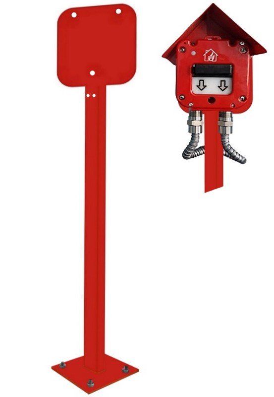 Стойка (опора) пожарная СП-01 предназначена для установки извещателей пожарных ручных, устройств дистанционного пуска и оповещателей, типа ИП535Ех «СЕВЕР» 0Ex ia IIC T6 Ga, ИП535/В «Север» 0Ex ia IIC T6 Ga, УДП 535–50 «СЕВЕР» 0Ex ia IIC T6 Ga Х, ИП 535-50, ИП 535-26, УДП 535-50, ОС-12/В»АЯКС при отсутствии стен или других строительных конструкций.