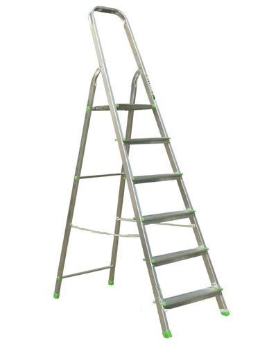 Алюминиевая стремянка АМ706 рассчитана на 150 кг, удобна при проведении монтажных работ, а также в быту и строительстве, легкая, прочная. Имеет широкое устойчивое основание, удобную 80мм рифленую поверхность ступени, предотвращающую соскальзывание стопы, прочную страховочную ленту, удерживающую стремянку в рабочем положении. Площадку с рифлением (она же верхняя ступенька) из оцинкованной стали, дугу безопасности высотой 65 см защищающую от падения.