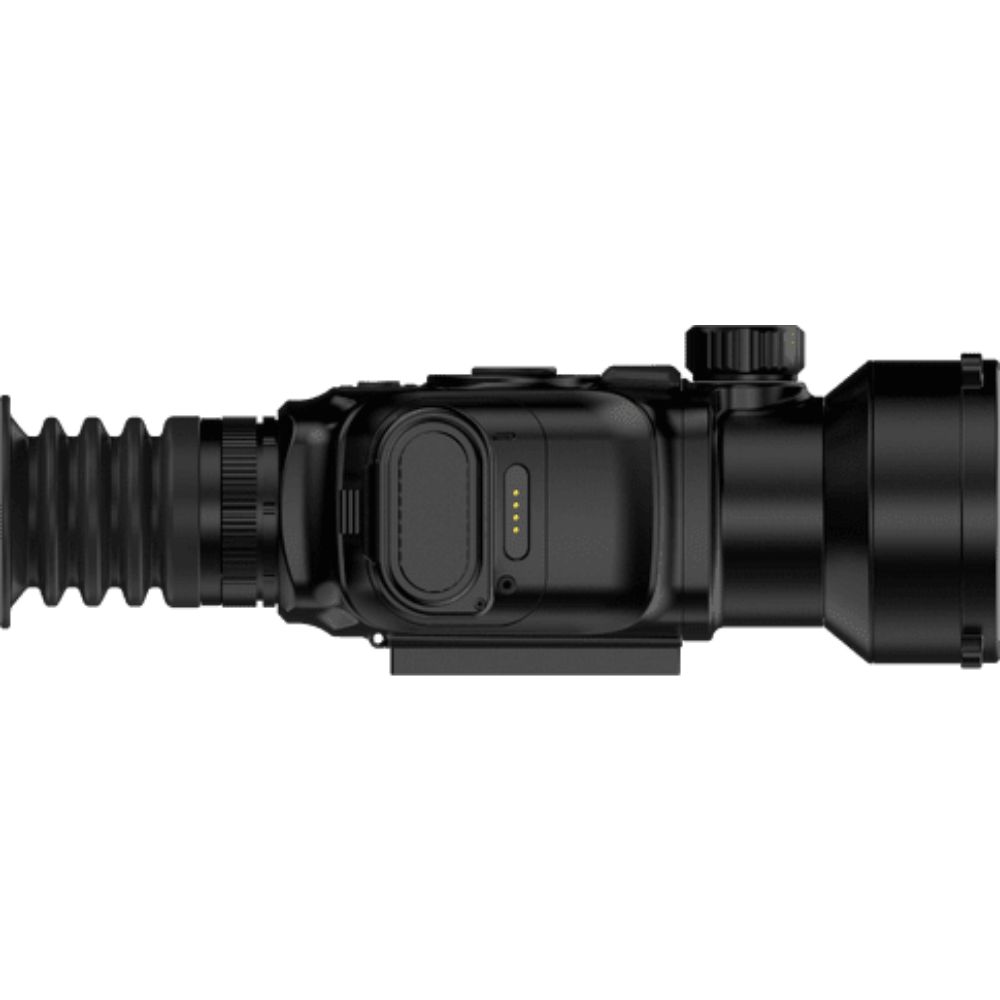 Корпус прибора выполнен из высокопрочного магниевого сплава, что делает прицел лёгким и надёжным в условиях охоты, где риск падения или ударов совсем не маленький. Плюс к этому, прибор оснащён двумя аккумуляторами типа 18650, которые обеспечивают до 14 ч. непрерывной, автономной работы. Это позволяет использовать устройство длительное время без замены источников питания.