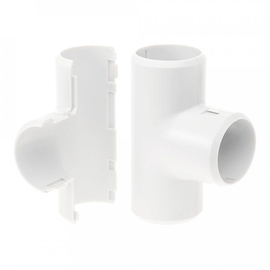 Предназначен для соединения гофрированных труб или гладких труб из пластика, образуя Т-образное ответвление, что позволяет придать более эстетичный внешний вид местам соединения. Состоит из двух частей соединяющихся друг с другом. Благодаря разъёмному корпусу, имеет возможность установки на уже смонтированную трассу.