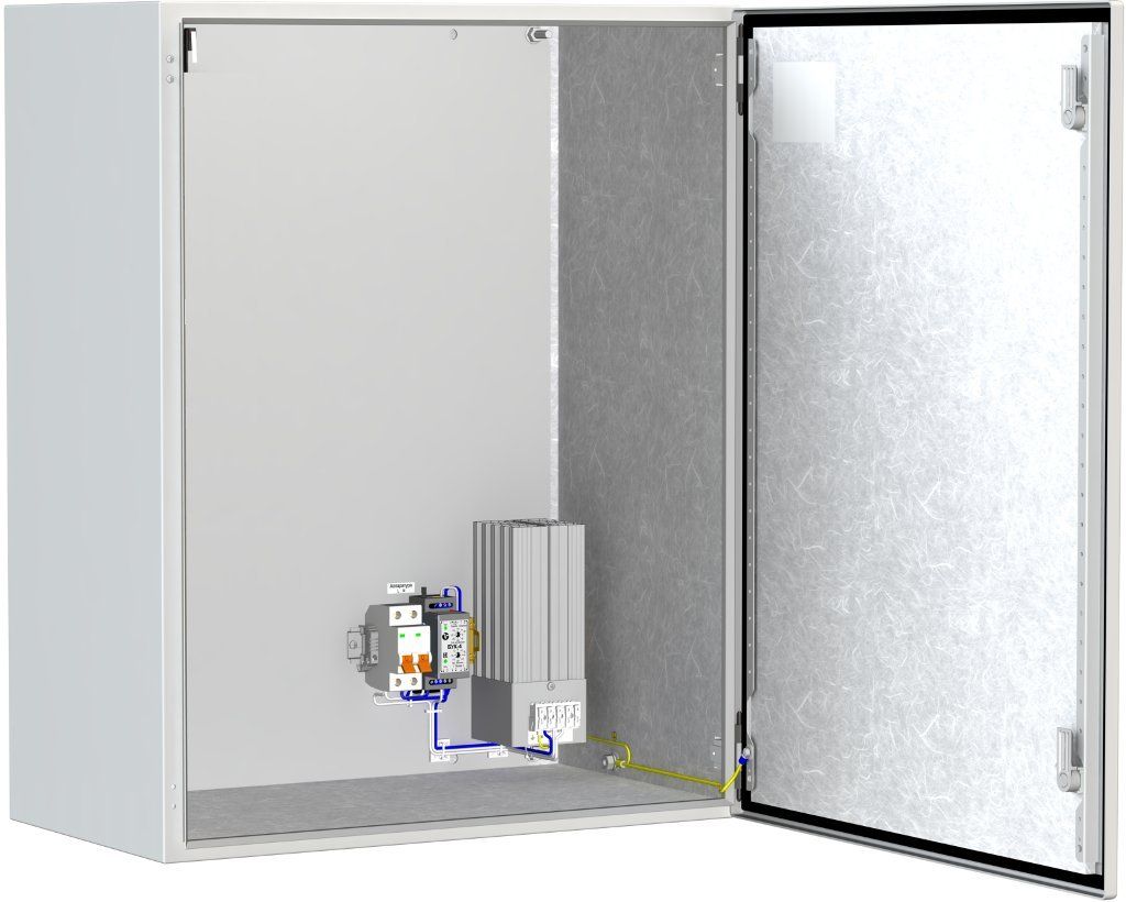 Термошкаф; AC 220 В; I-нагр.6 А(max); P-потр.178 Вт; IP66; -40...+50°С; 600х760х350 мм. В комплекте: блок управления климатом (БУК-5), обогреватель шкафов ОТШ-160, тампер.
