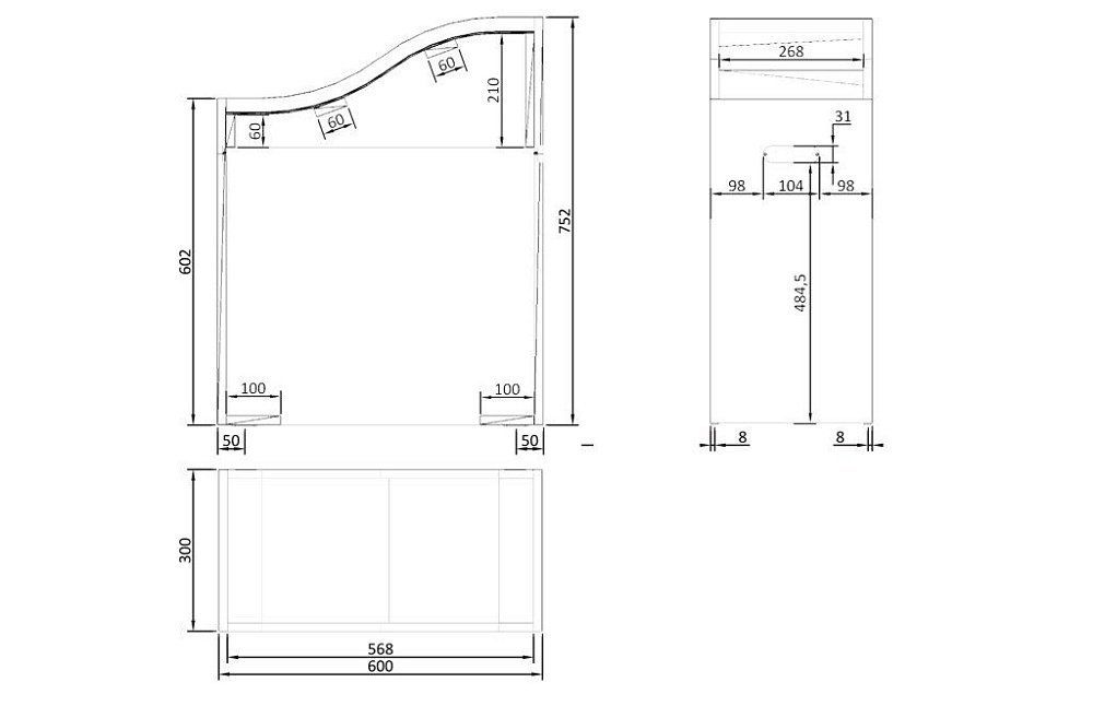 Корпус из ЛДСП прочный, конструкция устойчивая. Тумбу легко протирать с использованием обычных бытовых средств. Высота рассчитана таким образом, чтобы проводить контрольные процедуры без дискомфорта для людей.
