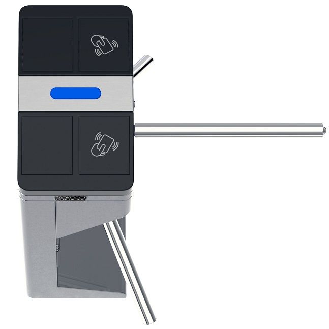 В базовой версии БЛОКПОСТ ТРД 1000 оснащается двумя электронными считывателями карт допуска. Дополнительно эта модель может быть оборудована биометрическими устройствами (сканером отпечатков пальцев, системой распознавания лиц). Вне зависимости от комплектации, пропускная система турникета может работать как в одном направлении, так и в двух одновременно (на вход и на выход).