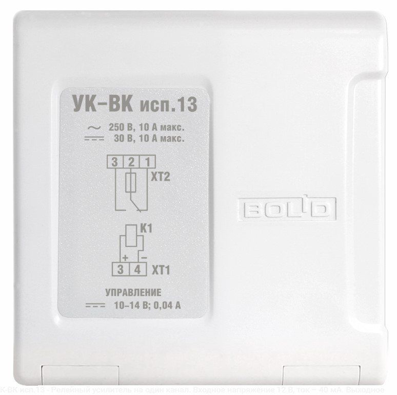 Устройство коммутационное УК-ВК в системах охранной сигнализации и контроля доступом предназначено для коммутации исполнительных устройств (ламп, сирен, видеокамер, электромагнитных замков и т.д.) в сети переменного тока номинальным напряжением 220 В или в цепях постоянного тока до 30 В путём замыкания, размыкания и переключения контактов реле. В системах пожарной сигнализации устройство предназначен для передачи стартового импульса на прибор пожарный управления.