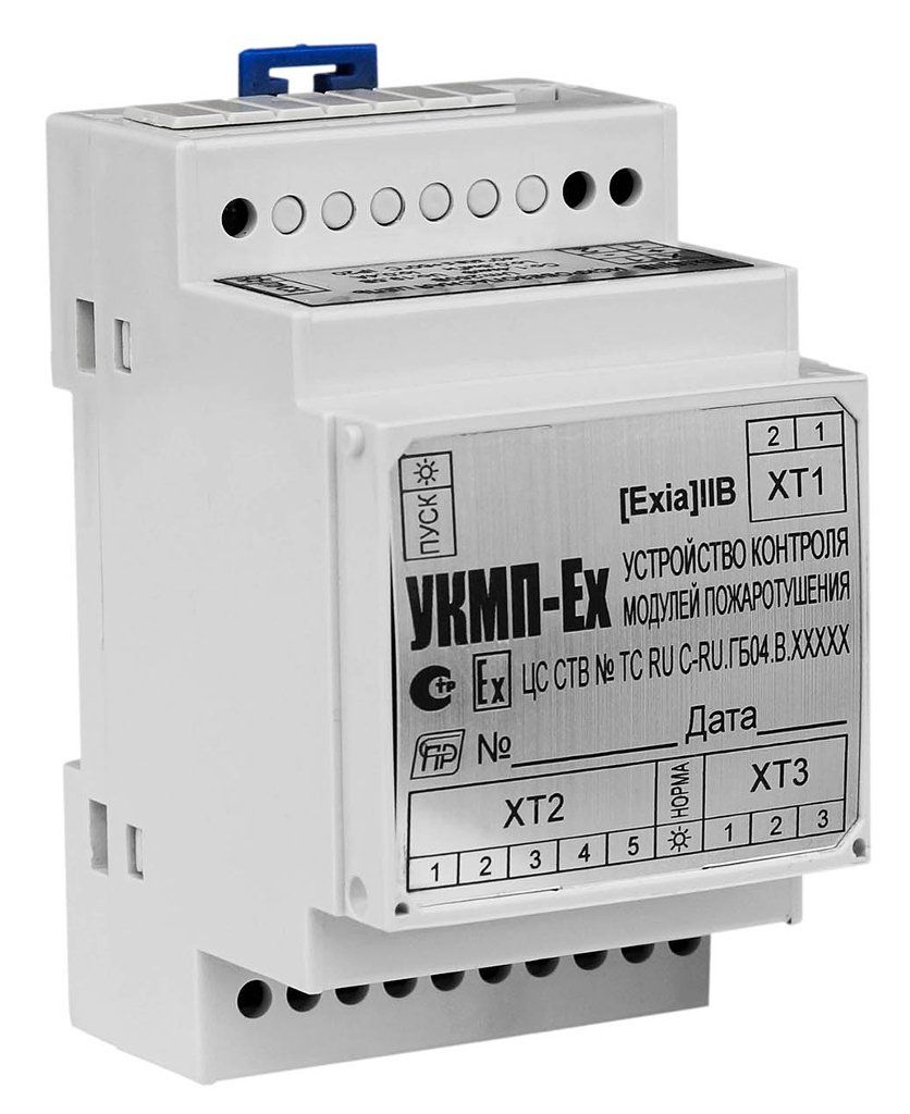Устройство контроля модулей пожаротушения «УКМП» предназначено для контроля исправности цепи пуска с несколькими модулями пожаротушения (порошковыми, водо-пенными и т.п.) на основе пиротехнических источников холодного газа, и инициации их пуска путем выдачи пускового тока по команде от прибора управления.