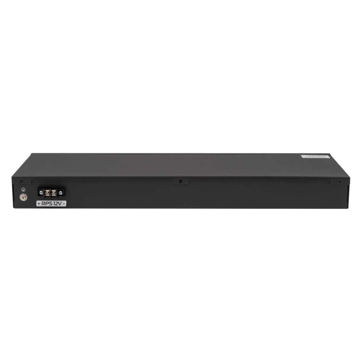 SNR-S2982G-24TE-RPS имеет встроенный блок питания 90-264V AC, а также разъем RPS для подключения источника питания 12V DC. Заряд АКБ напрямую от коммутатора не производится. Такое резервирование питания обеспечивает бесперебойную передачу трафика при отключении электроэнергии.