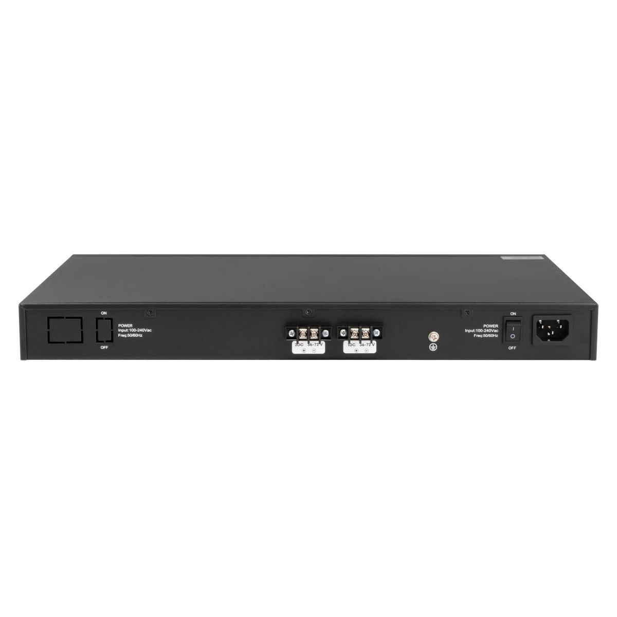 SNR-S5310G-48TX-2DC имеет два встроенных блока питания 36-72V DC. Для обеспечения резервирования подключение блоков питания производится к двум независимым источникам. Таким образом при перебоях питания на одном из источников, коммутатор продолжит свою работу.
