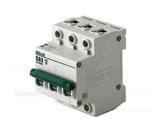 Автоматический выключатель, 3-полюсный; под винт 1.5...25 кв.мм; U-ном.230/400 В, I-ном. 63 А; характеристика срабатывания "С"; отключающая способность 4.5 кА; IP20, t-раб.-40…+60°С