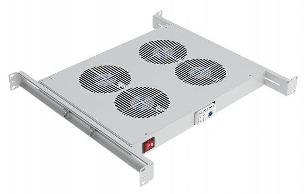 Вентиляторный модуль 19", 1U, 4 вентилятора с термореле от 0…+60°С, глубина 320 мм, серый, AC 220 В, 80Вт.