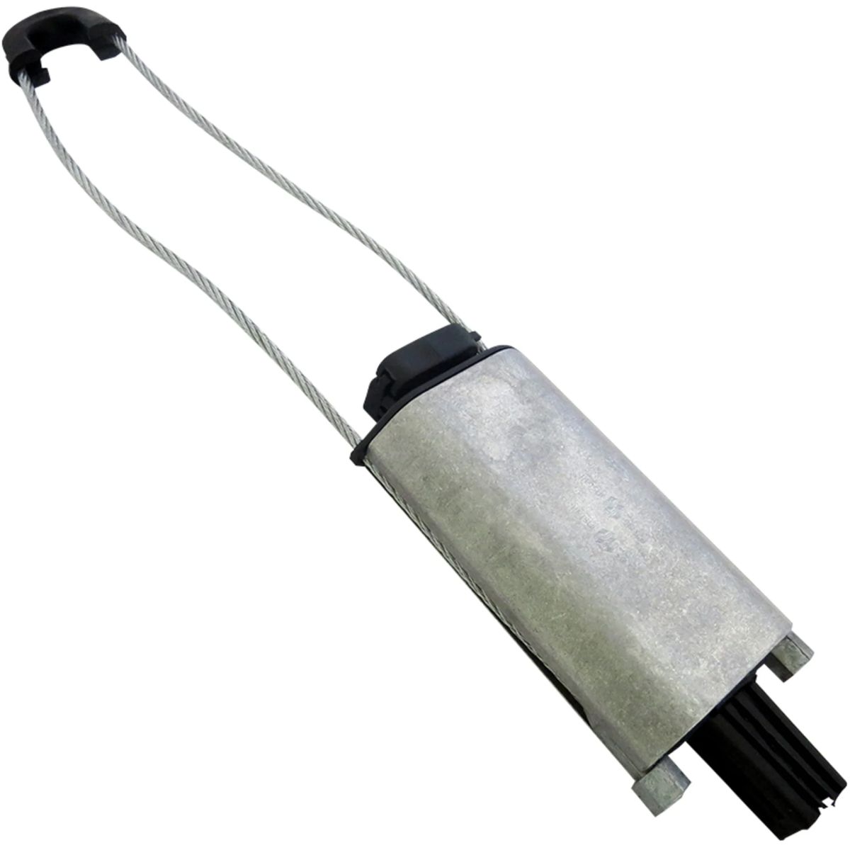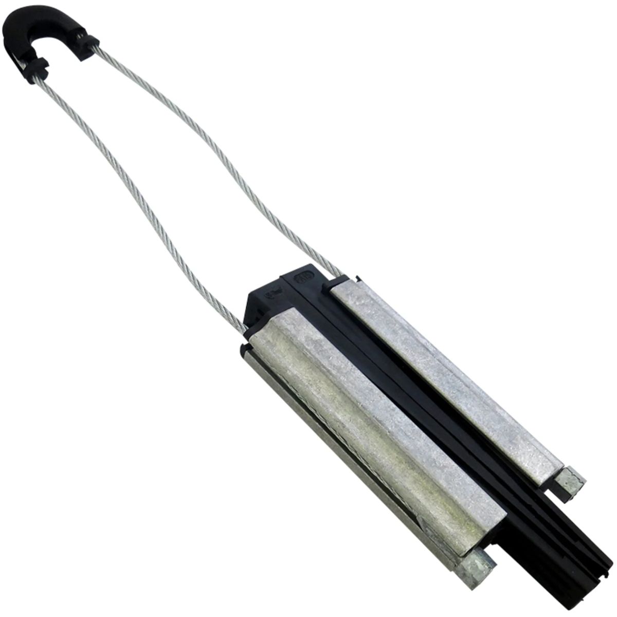 Зажим натяжной PA-1000 позволяет просто и быстро закрепить на опорах кабель типа "8" за несущий трос или проволку, а также самонесущий (круглый) кабель. Зажим состоит из прочного корпуса, двух зажимных невыпадающих клиньев и стального нержавеющего хомута. Корпус зажима состоит из алюминиевого сплава повышенной прочности.