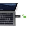 Устройство шифрует данные «на лету», используя 256-битный алгоритм AES-XTS, соответствующий стандартам криптографической безопасности. Флешка автоматически блокируется, если устройство, используемое для аутентификации, удаляется более чем на 5 м.
