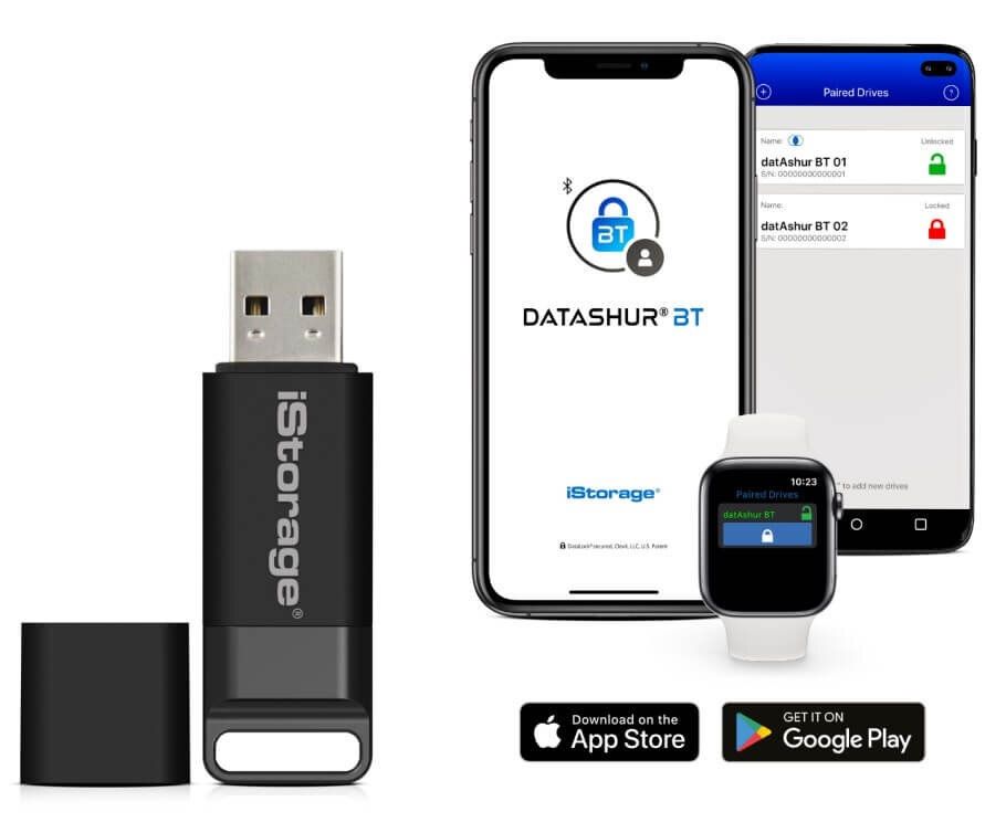 Сотрудникам компаний, опасающихся утечки конфиденциальных данных, рекомендуем купить iStorage datAshur BT USB3 32 ГБ, флешку с многофакторной беспроводной аутентификацией. Чтобы подключится к накопителю, необходим планшет, смартфон или смарт-часы Apple.